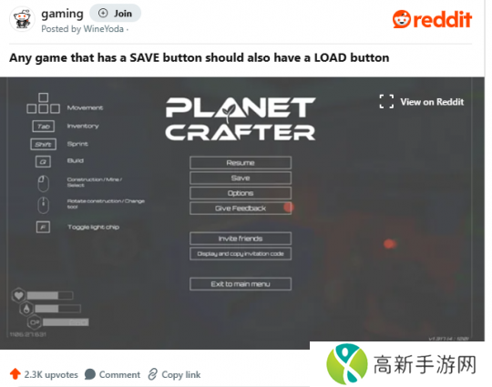·玩家晒出的《星球工匠》主菜单上就是只有存储键,没有读取键,感到太奇怪,呼吁官方应该两种按键都给设定上,实际上有这种设定的游戏不在少数,比如《如龙》、《死亡空间3》等等。