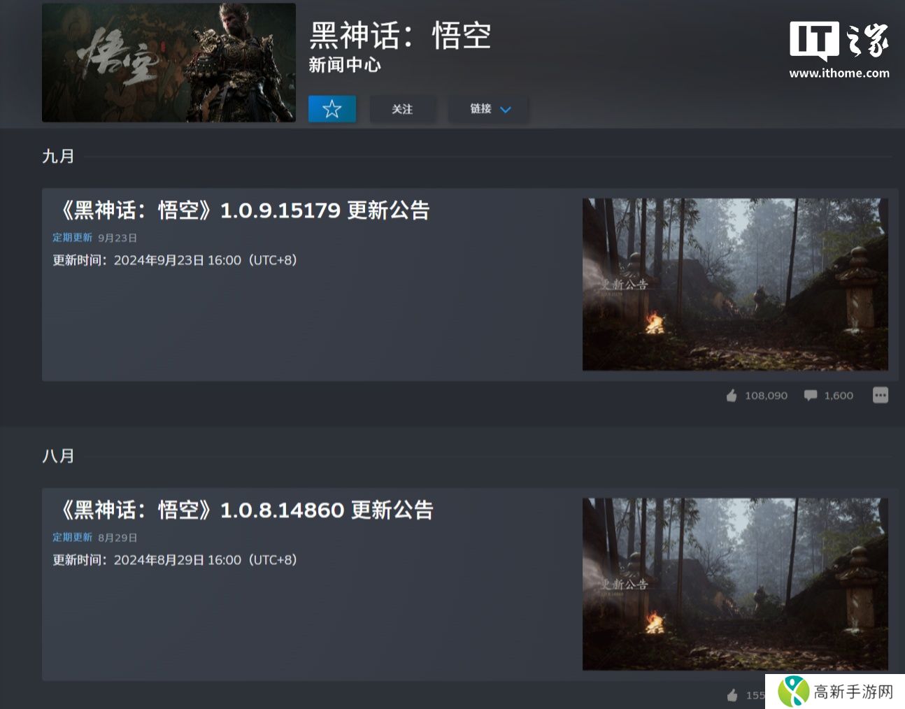 此外,游戏的《黑神话:悟空游戏音乐精选集》DLC 也已在 WeGame 平台上线,购买了豪华版的玩家可将音乐下载至本地,或前往“社区-悟空-惊耳”使用播放器进行播放。截至本站发稿,Steam 平台的《黑神话:悟空》暂未发布该版本更新公告。