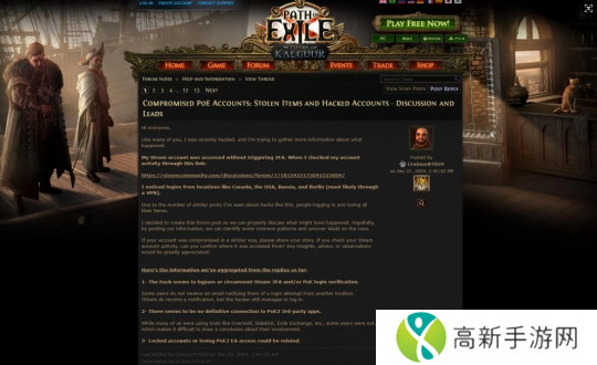 此外报道中提到黑客似乎毫不费力就绕过了Steam 2FA。一些受影响的用户表示,他们收到了有人试图登录其帐户的电子邮件,但不知何故,他们仍然设法绕过了Steam 2FA。如果这么容易做到,这意味着Steam可能会遇到比《流放之路2》目前面临的更大问题。