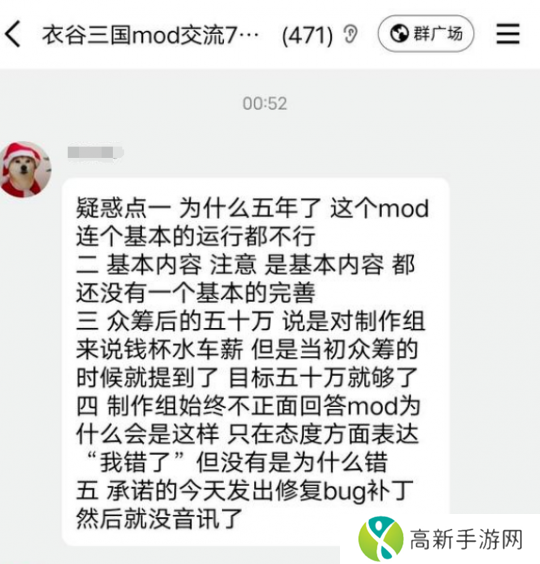 《衣谷三国》作为一个Mod作品,照理说玩家们是应该放低一些标准的。可自打开发团队接受众筹资金的那一刻,性质就已经变了。因为这件事不再是爱好者们“用爱发电”,而是带着责任的。