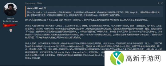《衣谷三国》Mod的情况,现已在整个《骑马与砍杀2》玩家社区产生了深远影响。就连开发商T社在中文板块的管理员,都发表了对此事件的看法。