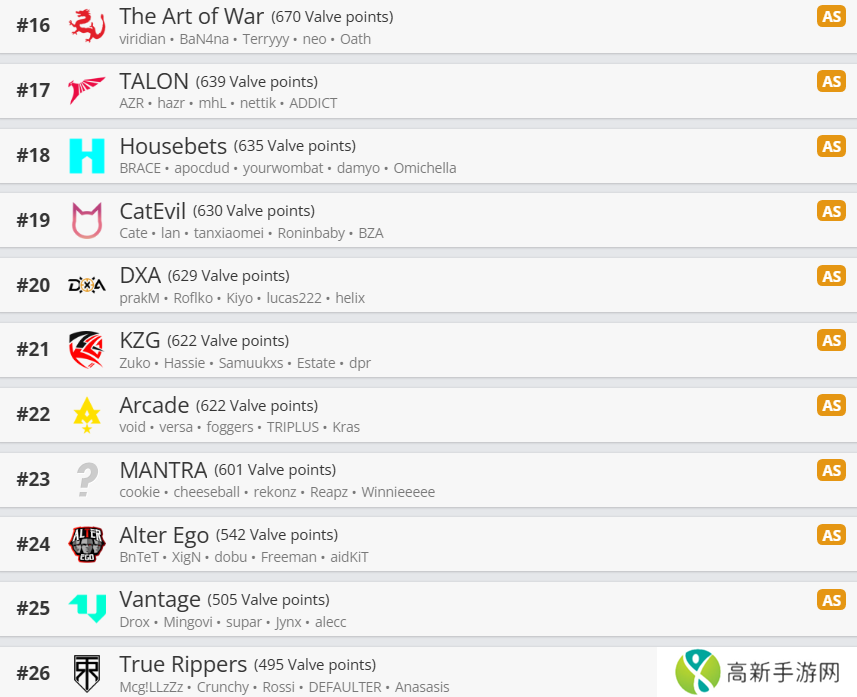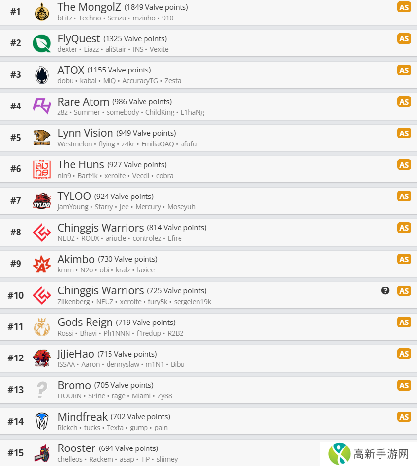 若有队伍拒绝邀请,名额将顺延给Valve地区排名(VRS)中名次紧随其后的队伍。