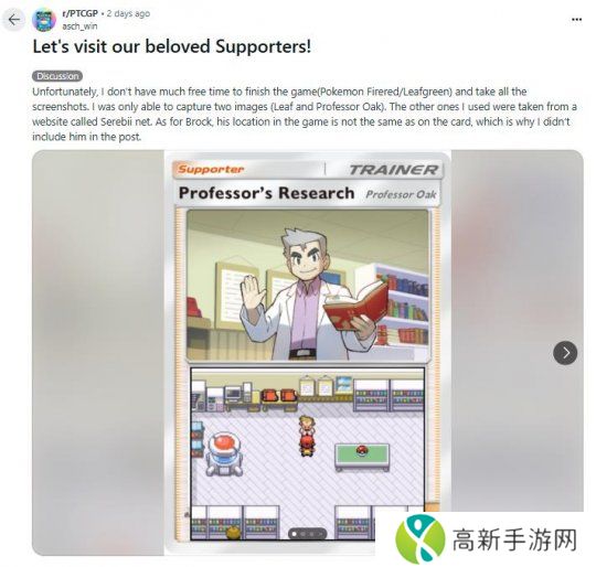 此外“asch_win?”还发现游戏中的训练师卡牌背景,也一一对应了他们在《宝可梦 火红·叶绿》等游戏中登场的位置,例如大木博士就在他的研究所内。