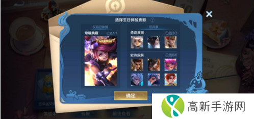 选择的皮肤均只适用于生日那天,若是生日那天9:00获得,则同样只适用于该日早上24:00。