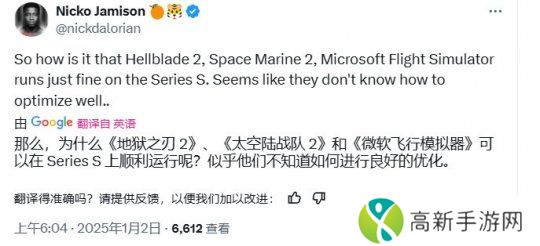 玩家:那《地狱之刃2》、《战锤40K:星际战士2》和《微软飞行模拟》怎么说?这些在Xbox Series S上都能好好地运行。看起来只是他们自己不知道如何优化罢了。