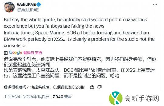 有玩家表示:“看完整个发言后,冯骥实际上在说游戏科学缺乏优化经验,无法将《黑神话》移植到Xbox平台。但是,看看《夺宝奇兵》、《战锤40K:星际战士2》,《使命召唤:黑色行动6》,这些都比《黑神话》更好看,规模更庞大,但这些游戏在XSS上就能完美运行,所以显然是游戏科学自己的事儿,而不是XSS主机。”