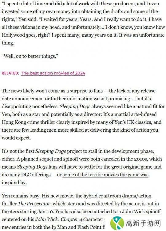 知名动作演员甄子丹,在接受外媒Polygon的采访时透露,《热血无赖》真人电影现已停止制作,惹来玩家无限唏嘘。从2017年首次传出消息,到筹备多年后停摆,甄子丹本人也显得有些无奈。他在采访中表示: