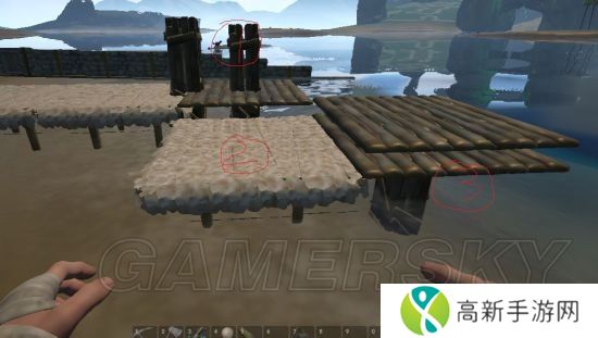 船的地基上放一个茅草天花板,就可以在茅草天花板下面再继续延伸下一个地基。
