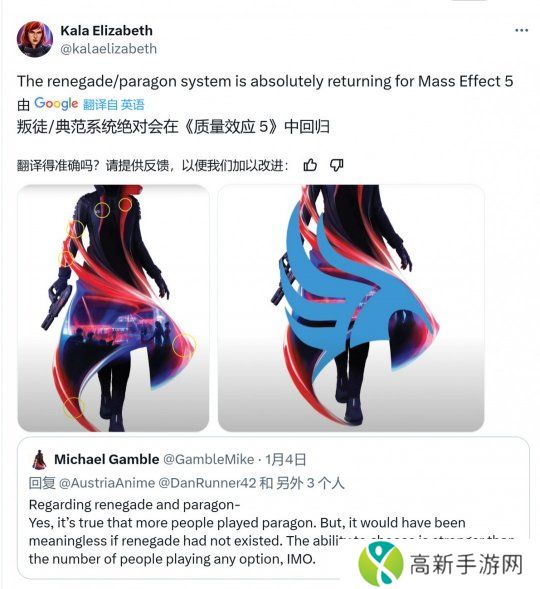 X用户@kalaelizabeth说:“叛逆/楷模系统绝对将回归《质量效应5》。“对此,Michael Gamble回应说:“我说的是三部曲。你们只能拭目以待……”