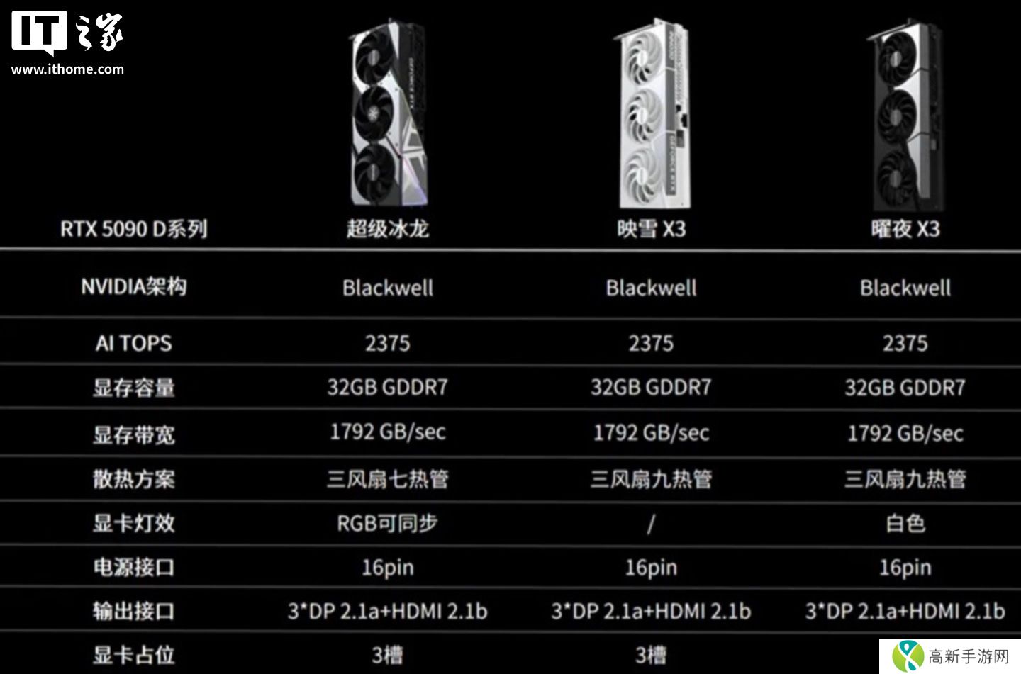 映众表示,其旗舰 GeForce RTX 5090 D 显卡的 AI TOPS 性能提升至 2375,相较于 RTX 4090 D 有 135% 的提升,在 GeForce RTX 5090 D 上,映众准备了适用于“发烧级玩家”的“超级冰龙”和定位中高端的曜夜 X3,其中“超级冰龙”使用第九代三风扇 ICHILL X3 散热系统。