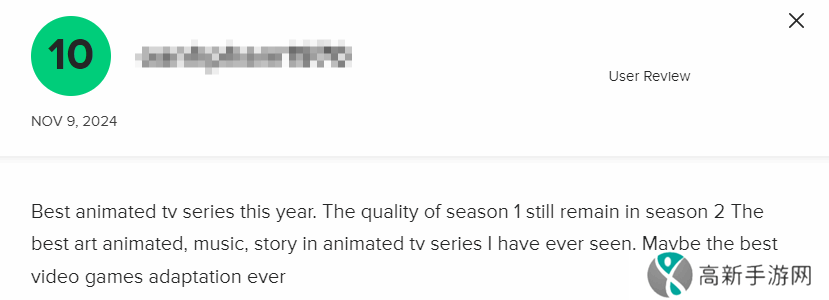 网友们盛赞本片是今年最好的动画剧集,有给出10分满分的用户认为这是“有史以来最好的电子游戏改编作品”。