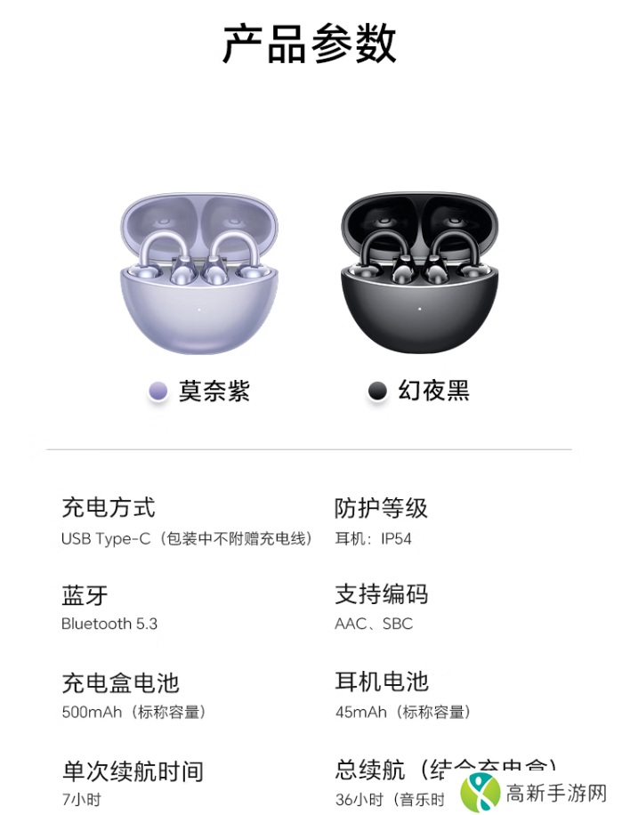据介绍,荣耀亲选 LCHSE 耳夹式耳机核心区域使用高性能钛合金材料,覆盖耐刮耐腐蚀 PC 材质,单耳重约5.1g,拥有幻夜黑、莫奈紫2 款配色。
