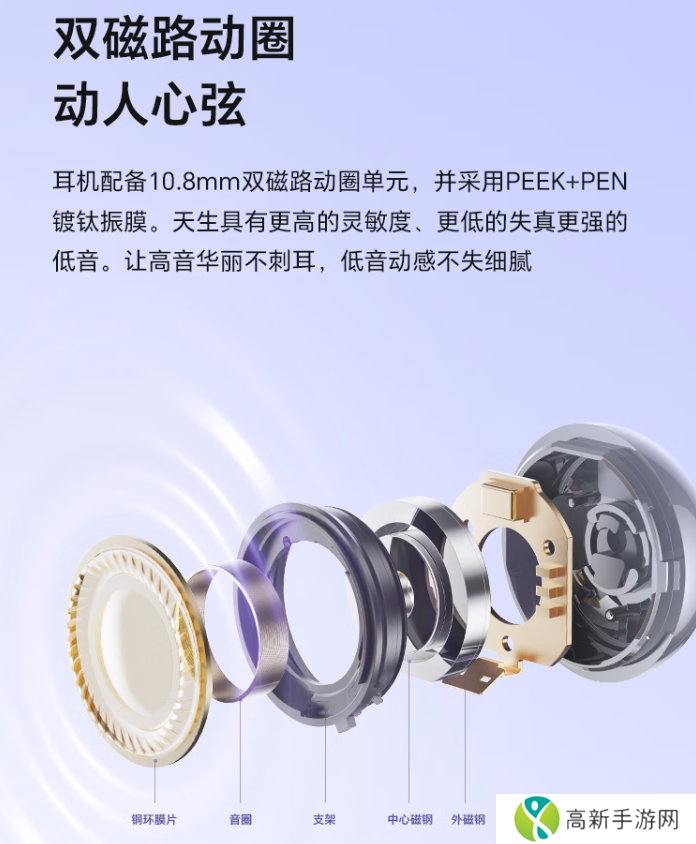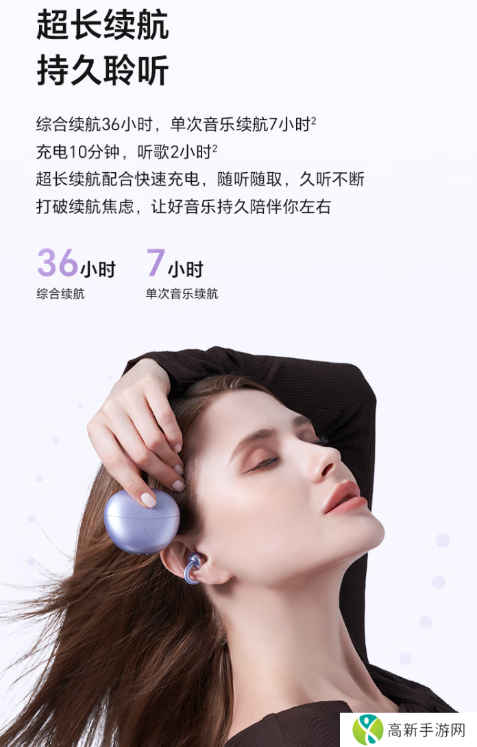 荣耀亲选 LCHSE 耳夹式耳机配备10.8mm 双磁路动圈单元,辅以 PEEK+PEN 镀钛振膜。耳机内置动态低音增强技术,支持空间环绕声。官方宣称该款耳机拥有36 小时综合续航、单次音乐续航 7 小时。