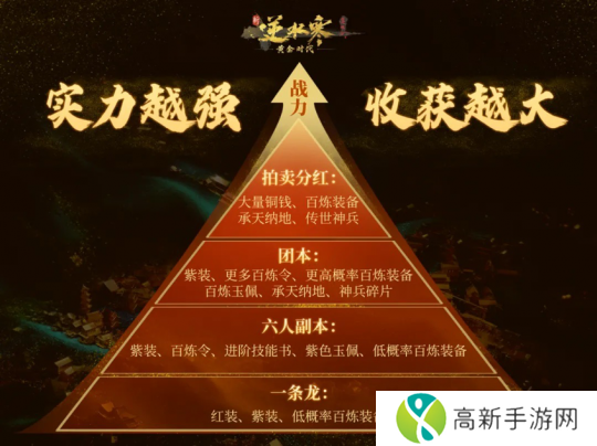 首先,黄金服将根据账号战力实行“金字塔”搬砖,简而言之,就是实力越牛,收益越高。传统的搬砖重点如一条龙、押镖等任务将退居其次,只产生基础收益。相反,日常任务中的PVP、PVE成为搬砖赚米的大头,而且玩法难度提升,收益随之水涨船高。