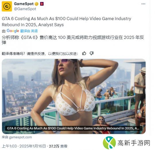 分析师预测《GTA6》定价80-100美元 T2老板早打过预防针