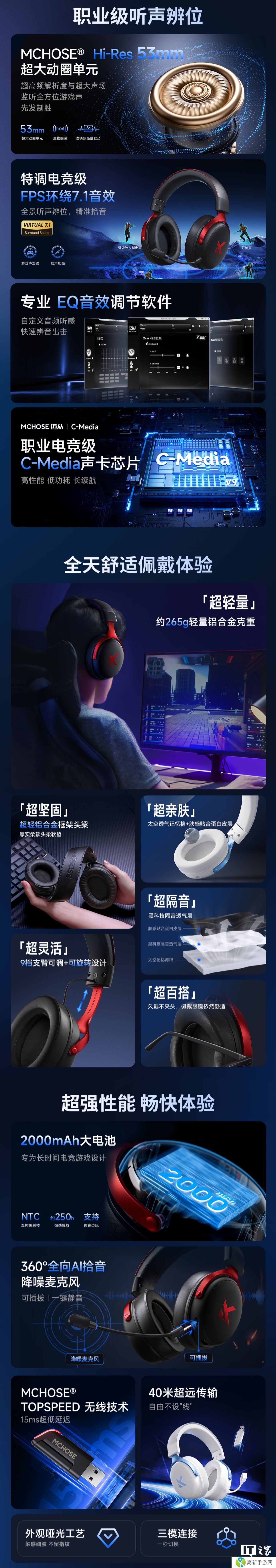 感谢本站网友 华南吴彦祖 的线索投递! 本站 12 月 9 日消息,迈从 V9 系列电竞头戴耳机今日正式亮相,系列耳机支持环绕 7 1 音效、三模连接,首