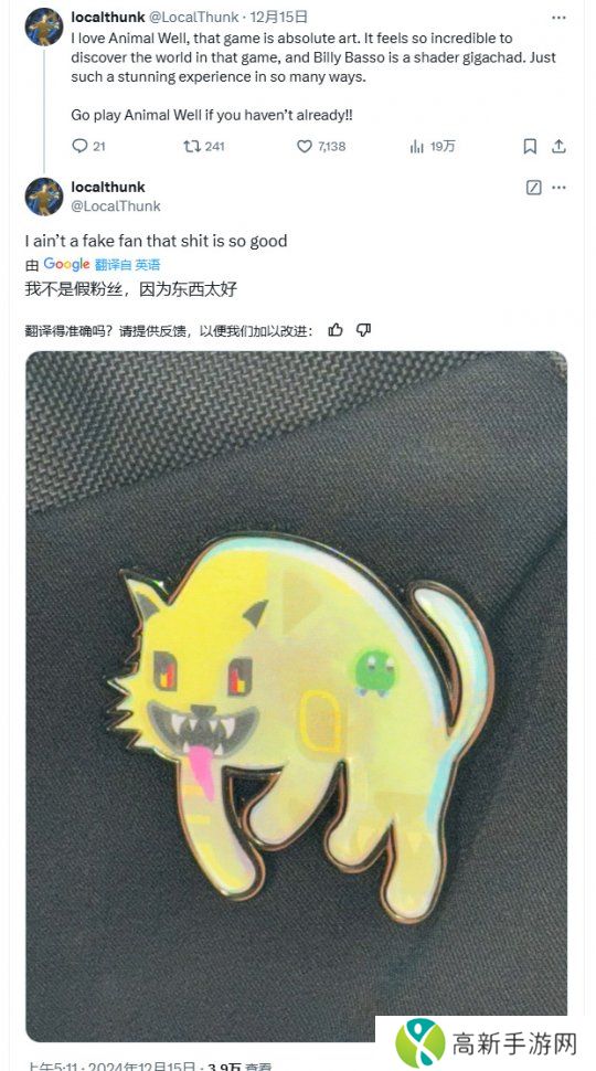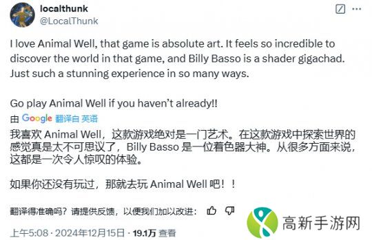 而作为今年最成功的独立游戏开发者,《小丑牌》的作者Localthunk最近却安利起了另一款单人开发的独立游戏《动物井》。在X动态中他对《动物井》丝毫不吝赞美之词,强烈推荐大家去体验这款佳作。