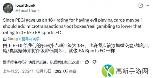 最近Localthunk就对审查机构给《小丑牌》贴上18+的标签感到恼怒,理由则是因为游戏中包含扑克牌的元素。反倒是一些带有微交易、开箱机制的游戏,被评为3+游戏。(允许3岁以上玩家游玩体验)