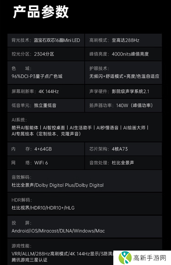 创维酷开 K6 Ultra「AI」Mini LED 电视亮点信息如下: