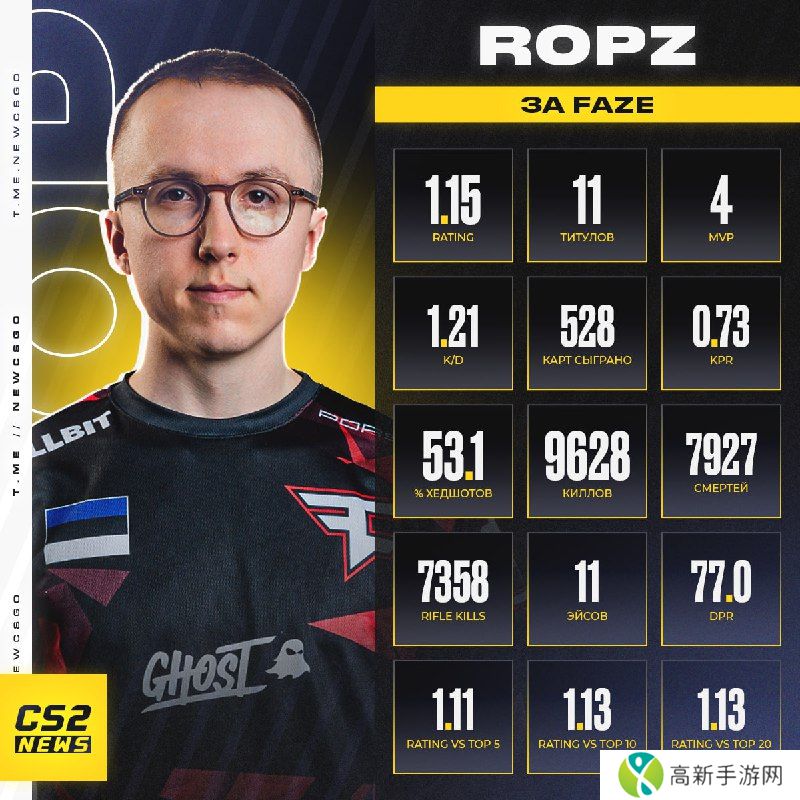 下面就让我们一起来回顾ropz在效力FaZe期间的成绩和数据表现吧。以下数据统计自HLTV: