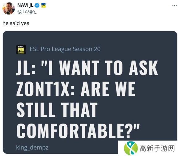 此前,zont1x在采访时表示NAVI是一个让他们觉得很舒服的对手。于是NAVI在EPL S20赛事上战胜Spirit之后,jL在赛后采访中反击:“还觉得NAVI是个舒服的对手吗?”