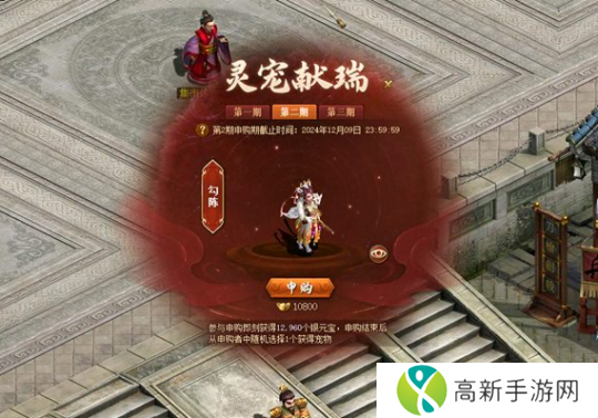 灵宠献瑞活动分三期,每期消耗金元宝申购珍稀神兽和坐骑,申购完成后将立即获得申购时所支付金元宝等值的银元宝,并额外获赠20%的银元宝。最终系统会在所有当期参与活动的玩家当中,随机抽取其中一位幸运玩家获得当期奖励。