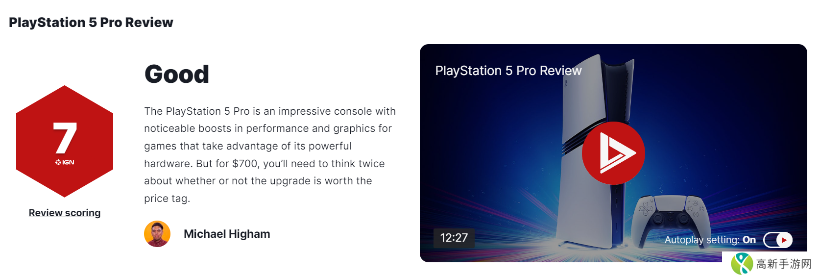 值得一提的是,PlayStation 5 Pro此前已在全球范围内上市,建议零售价为700美元。知名游戏媒体IGN对其进行了评测,最终给出了7分的成绩。IGN表示,PS5 Pro在游戏性能和画质上均有显著提高,但消费者在购买前还是要考虑一番。