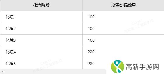 化境需要消耗大量的幻晶材料,每个化境等级需要的幻晶数量都不同。