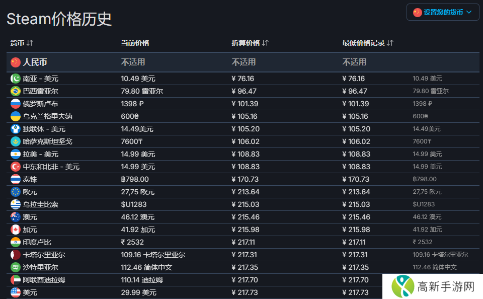 想要参与抢先体验,玩家需要购买资格,官网显示为29.99 美元(本站备注:当前约 218 元人民币),其中实际上包含了等价的游戏内购买外观物品以及额外仓库格子的等价货币。购买后即可通过官方注册的账号登陆独立客户端,其他区价格见下图: