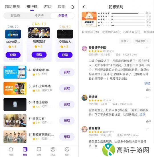 此外,影核也配合万圣节举办定期活动,推出节日饰品,保持了免费和付费用户的粘性。我们欣喜地看到,《驼崽派对》长时间占据PICO免费榜头名位置,也能看到PICO商城里不少玩家评论表示“游戏转免费后在线人数明显增多,联机体验更好了”等正向反馈。