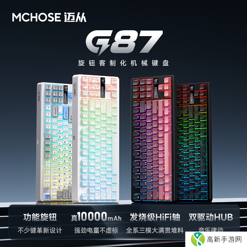 本站 1 月 2 日消息,迈从 G87 机械键盘已于 12 月 9 日开售,该款键盘快金轴 V2 黑莓粉新色官宣上市,采用 Gasket 结构 + 侧刻设计,售价 269 元。京东迈从(MCHOSE)