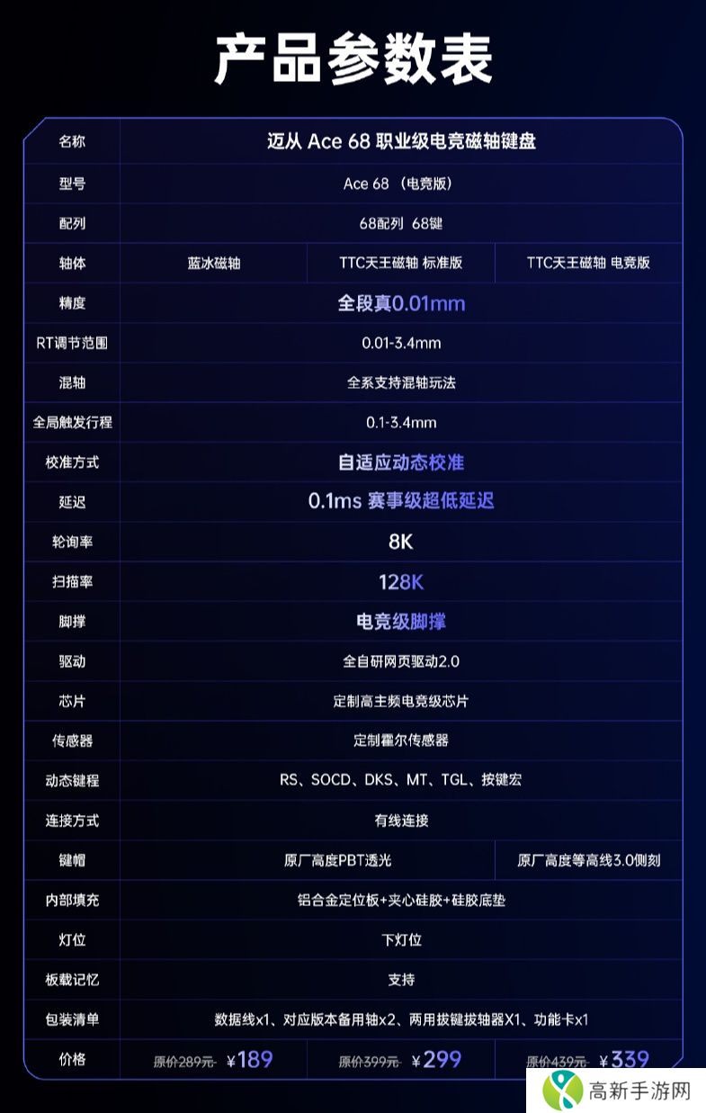 本站附 Ace 68 电竞磁轴键盘各版本详细参数如下: