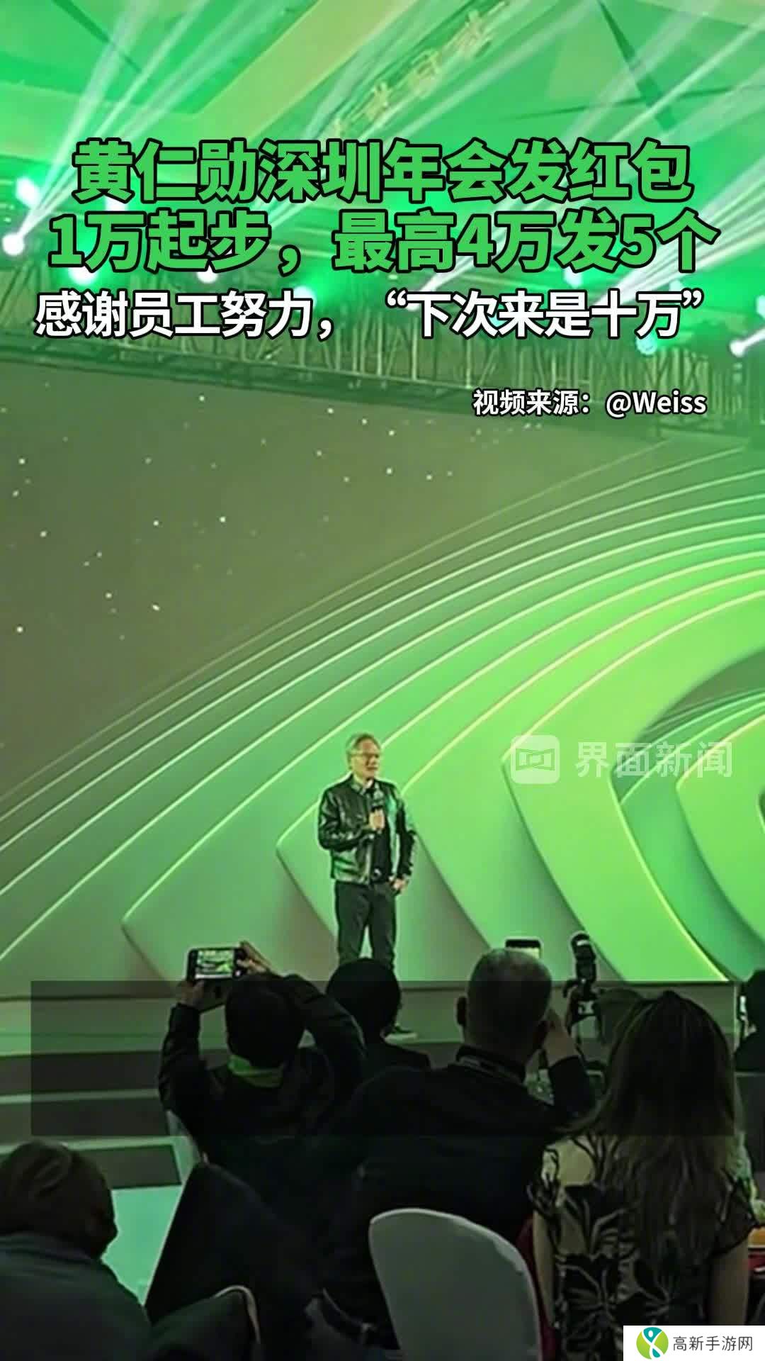 本站 1 月 16 日消息,据界面新闻报道,英伟达 CEO 黄仁勋昨晚出席了在深圳公司的年会,并对员工的努力工作致谢,发放了数额 1 万元、2 5 万元的红包各十余个,还发放了 5 个 4 万元的红包