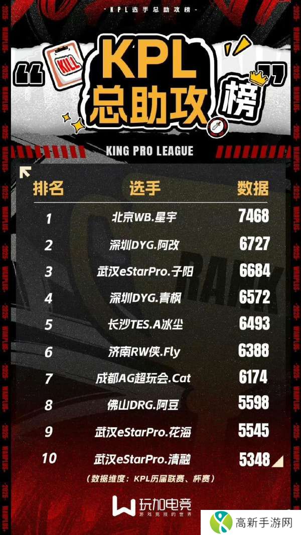 KPL总助攻榜:星宇断崖第一,Fly Cat在榜,ES三人前十,你怎么看?