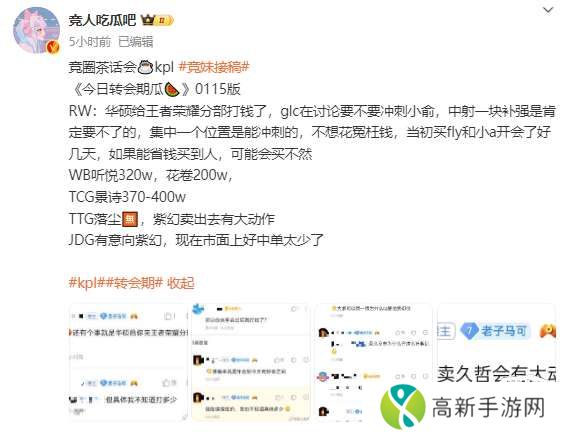 1、RW:华硕给王者荣耀分部打钱了,glc在讨论要不要冲刺小俞,中射一块补强是肯定要不了的,集中一个位置是能冲刺的,不想花冤枉钱,当初买fly和小a开会了好几天,如果能省钱买到人,可能会买不然;2、W