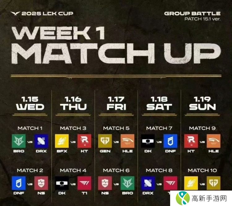 直播吧1月14日讯 2025LCK赛区的赛事将于1月15日开启,首周赛程出炉,揭幕战为BRO vs DRX。