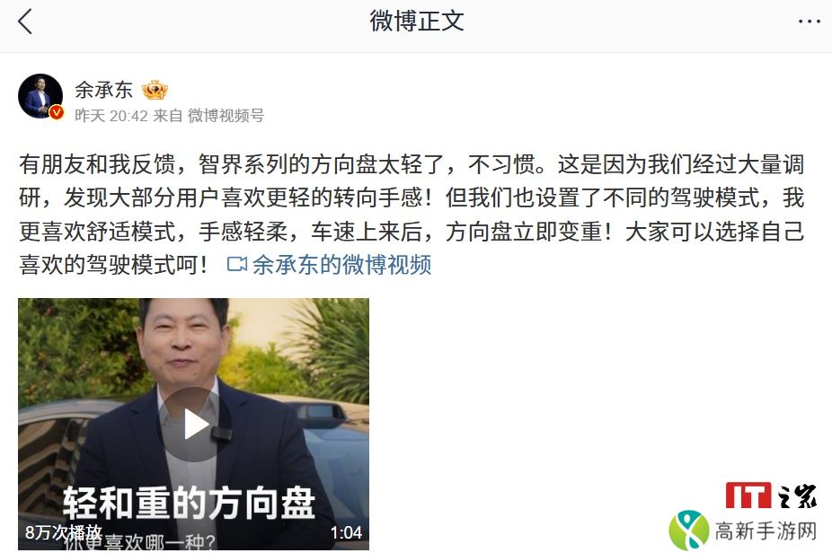 感谢本站网友 Autumn_Dream 的线索投递! 本站 1 月 15 日消息,华为常务董事、终端 BG 董事长、智能汽车解决方案 BU 董事长余承东昨