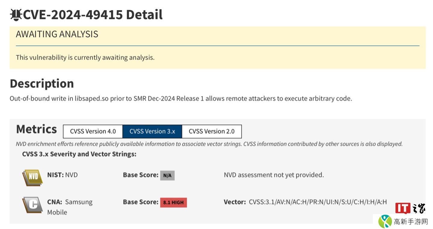 本站 1 月 14 日消息,谷歌Project Zero 团队发文,披露了三星海外版本手机存在的一个高风险内存越界写入(OBW)漏洞 CVE-2024-49415,该漏洞位于 Monkey s Aud
