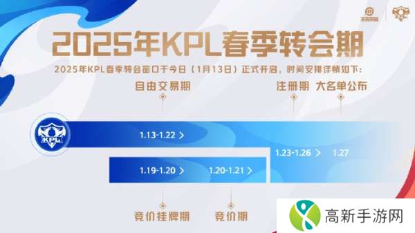 虎扑01月13日讯 春季转会期公告:今日开启自由交易期,1月27日公布大名单原文如下:【2025KPL春季转会期 开启公告】2025年KPL春季转会窗口于今日(1月13日)正式开启,时间安排详情如下: