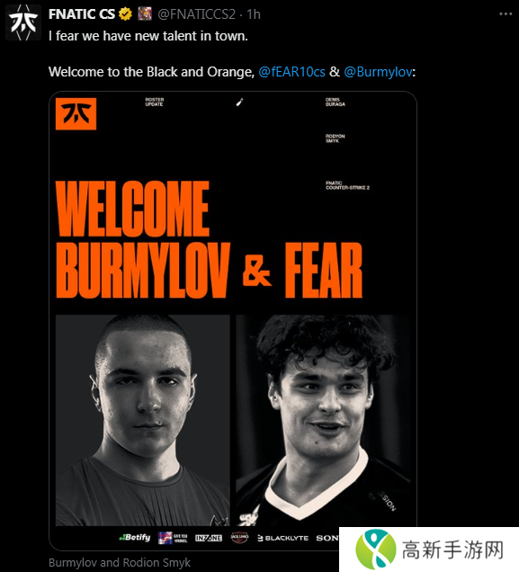 今日fnatic俱乐部于官推宣布签下fear和Burmylov。这家英国俱乐部将在2025年迎来两名新成员。Fnatic宣布签下了fear和Burmylov,他们的新阵容就此成型。这对来自乌克兰的二人