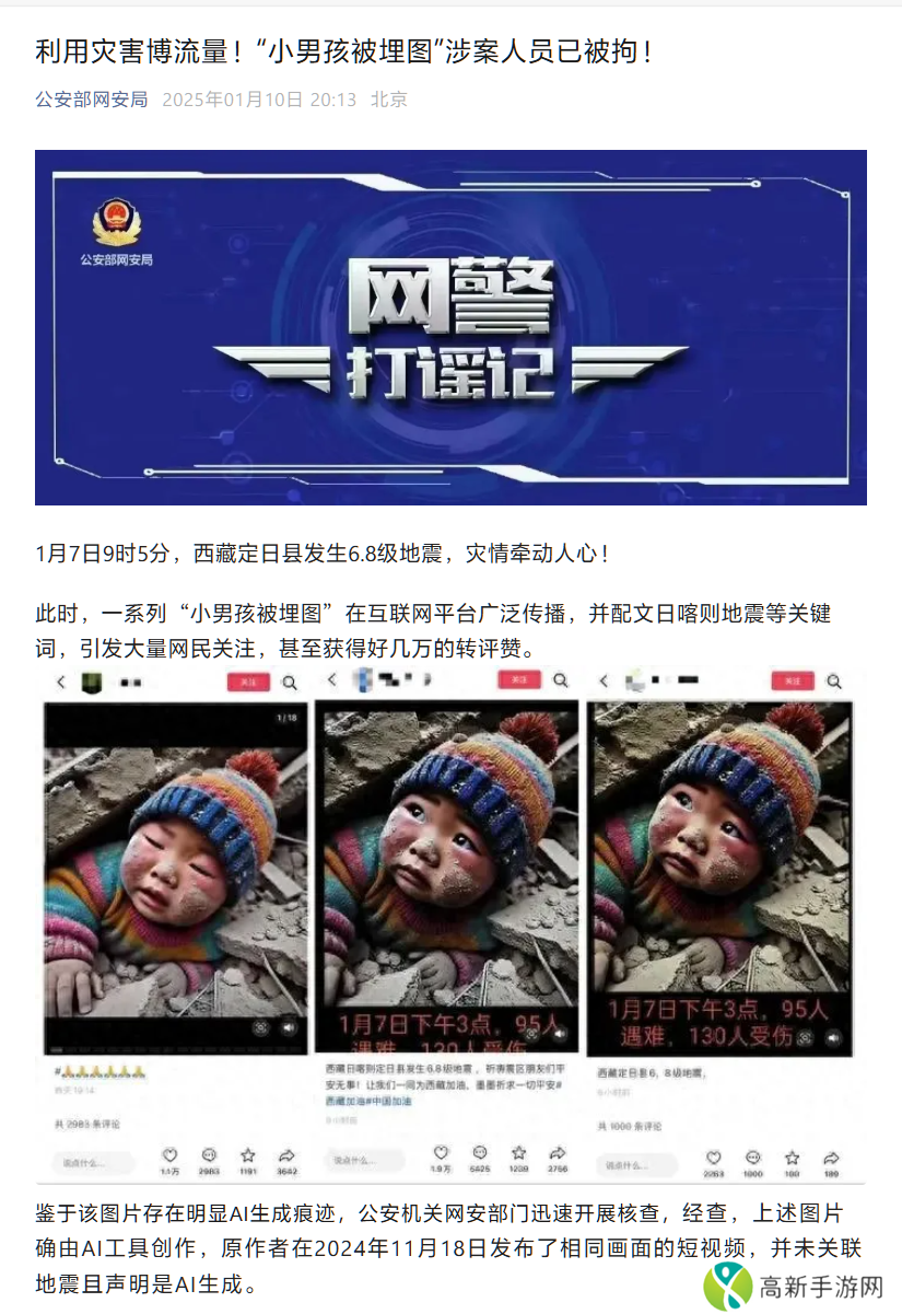感谢本站网友 西窗旧事 的线索投递! 本站 1 月 10 日消息,本站从公安部网安局获悉,青海某网民为博取眼球,将“小男孩被埋图”与日喀则地震相关的信息进