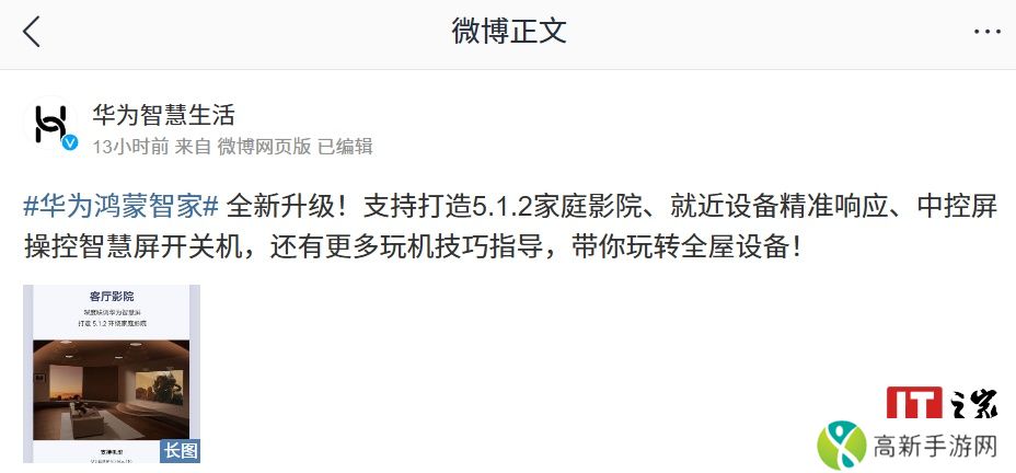 感谢本站网友 驴头社 的线索投递! 本站 1 月 9 日消息,华为智慧生活今日发文官宣鸿蒙智家老用户体验升级,支持打造 5 1 2 家庭影院、就近设备精准
