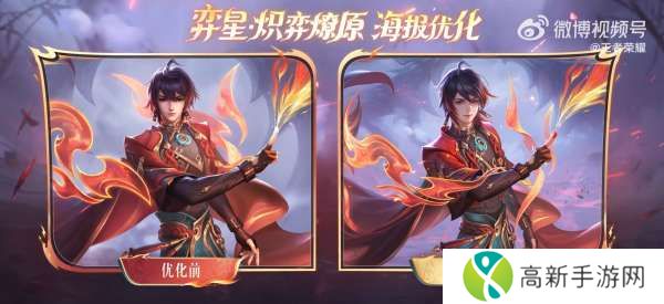 在最新一期的亚瑟答疑中,小王给大家带来了4款皮肤的优化,其中有3款是大家心心念念了很久的武则天、妲己、瑶无双皮肤优化。弈星炽弈燎原弈星的史诗皮肤炽弈燎原优化了海报,主要体现在两个地方,一个是站姿,原来