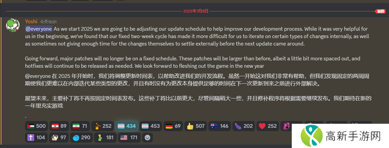 Deadlock官方dc截图如下:随着2025年的开启,我们将调整更新计划,以助力完善我们的开发流程。虽说在一开始这种固定的两周更新周期对我们很有帮助,但我们发现它使得我们在内部针对某些类型的变更进行