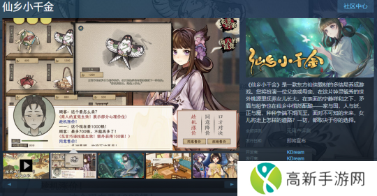 今日(1月4日),东方仙侠题材的多结局养成游戏《仙乡小千金》Steam页面上线,游戏支持简繁体中文,发售日待定,感兴趣的玩家可以关注一波。游戏介绍:《仙乡小千金》是一款东方仙侠题材的多结局养成游戏。您