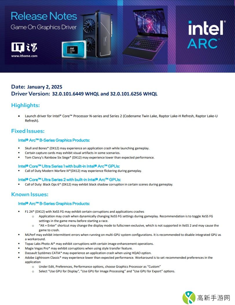 感谢本站网友 华南吴彦祖 的线索投递! 本站 1 月 3 日消息,英特尔今日发布了最新的 Arc 显卡 32 0 101 6449 6256 WHQL 驱