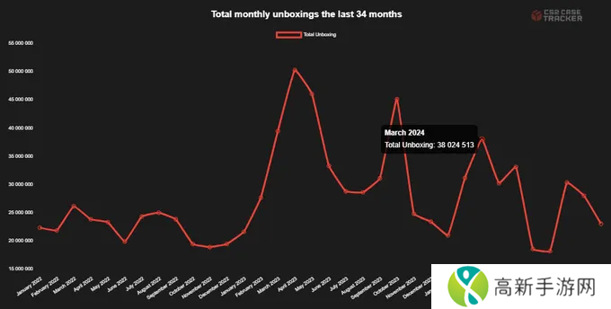 据外媒统计(数据源于CS2 Case Tracker),Valve在2024年通过销售CS2武器箱获得了7 6亿美元的收入。游戏玩家总计打开了超过3 04亿个武器箱,比2023年CSGO时期少了1亿个