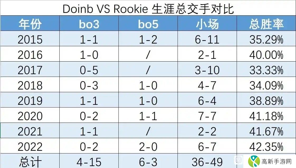 直播吧1月2日讯 此前,B站知名电竞博主“真实电竞”在直播时称Doinb复出目的就为了狙击IG打Rookie赚流量,为此有贴吧网友整理出两名冠军中单此前的交手记录。根据数据图显示,两人BO3中一共交手
