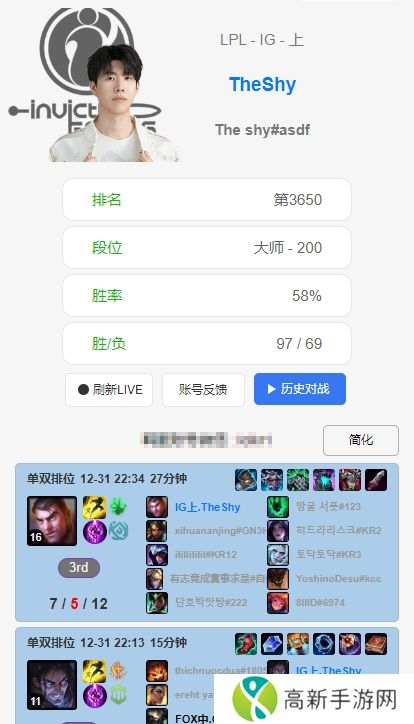 直播吧1月2日讯 德杯决赛落幕AL最终拿下冠军,圣枪哥在赛场上使用的“穿甲”流肉杰斯尽显奇效,近日Theshy在韩服排位中也玩起了“穿甲”流肉杰斯,目前Theshy杰斯战绩,“穿甲”流全胜,仅输掉一把