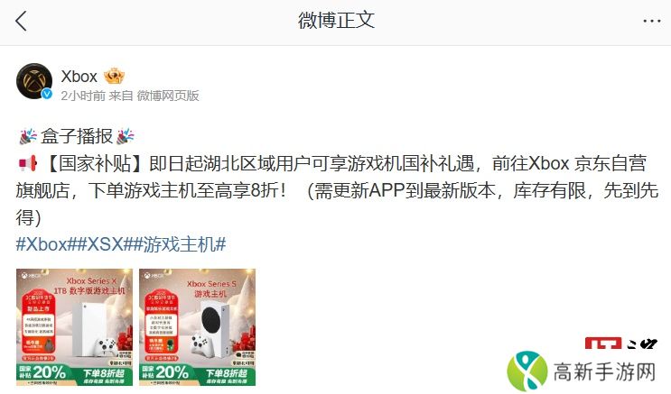 感谢本站网友 手写的从前 的线索投递! 本站 1 月 1 日消息,微软 Xbox 官方今日发文播报,即日起湖北区域用户可享游戏机国补礼遇,前往 Xbox